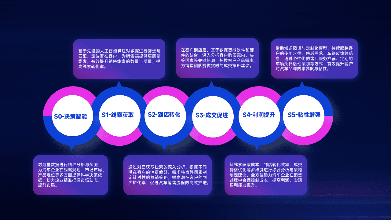 通过拓宽潜在客户来源、、、优化线索分配并提高到店转化率,,,以增强销售效率。。。同时,,,,利用线索数据不断优化分析模型,,,有效提升转化率,,,,扩大营销影响力。。